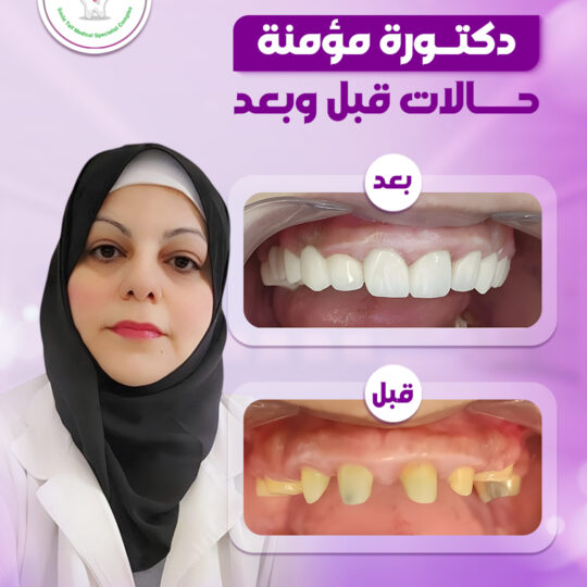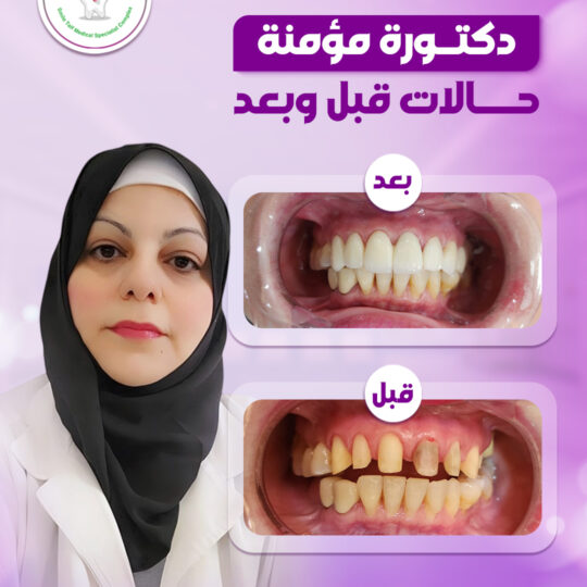 نستعرض في هذا القسم مجموعة من الحالات قبل وبعد التي تم علاجها بنجاح تحت إشراف د. مؤمنة، حيث نحرص على تقديم رعاية طبية دقيقة تركز على صحة الأسنان والمظهر الجمالي في آنٍ واحد.